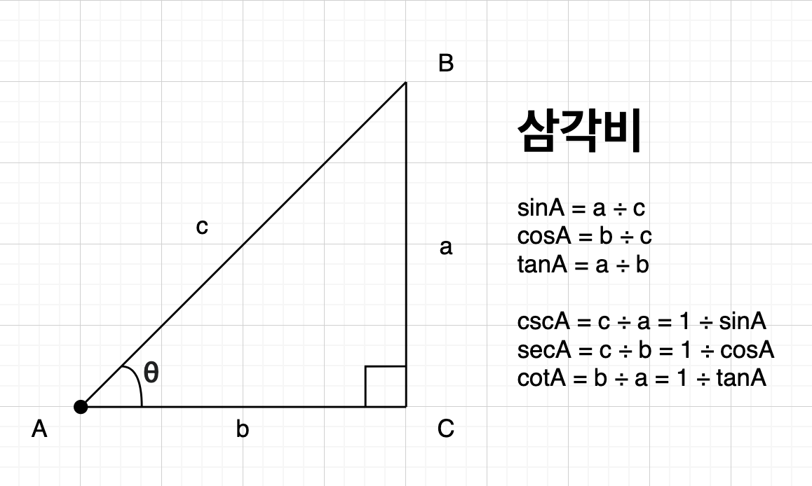 두 점 사이의 각도를 구할 때 atan2() 함수를 사용하긴 했는데 정확히 어떤 의미 인지 함수를 그려보자. 먼저 아래 그림을 보면 각 $ \theta $ 에 대한 sin, cos, tan 값을 구할 수 있는데,